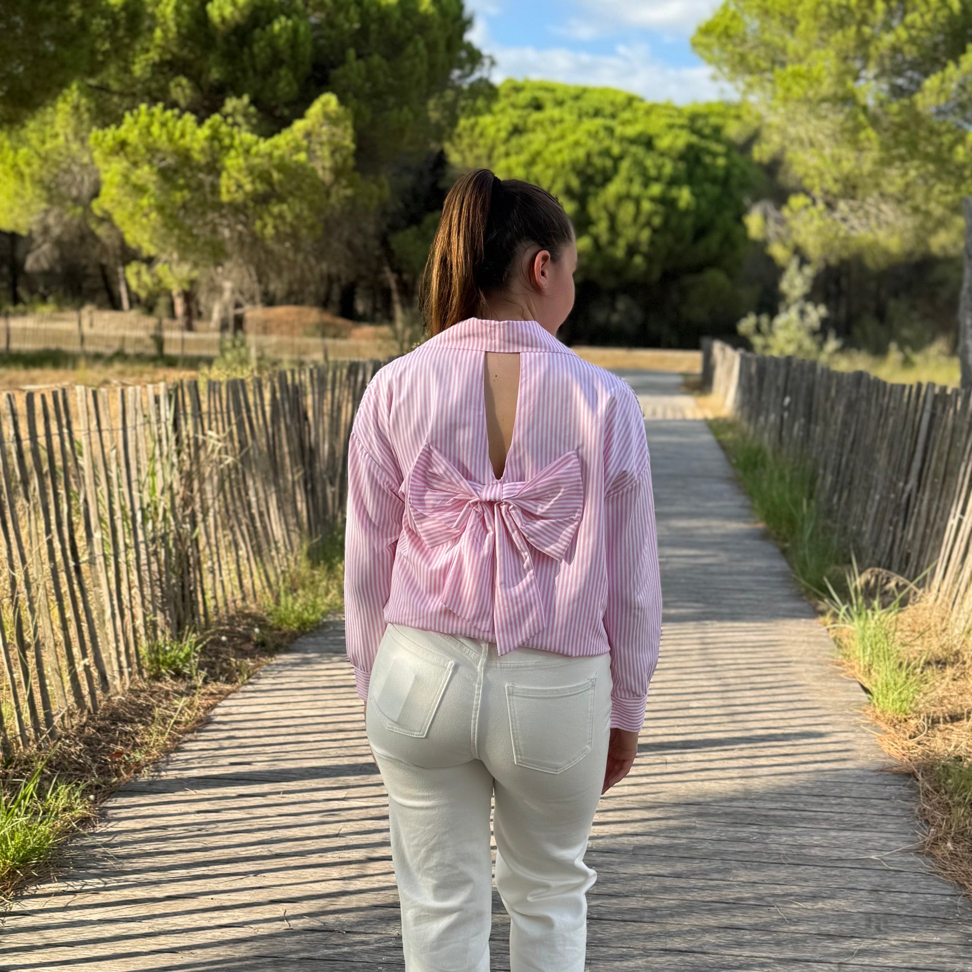 - Détails : Nœuds sur le dos, ajoutant une note féminine et sophistiquée.