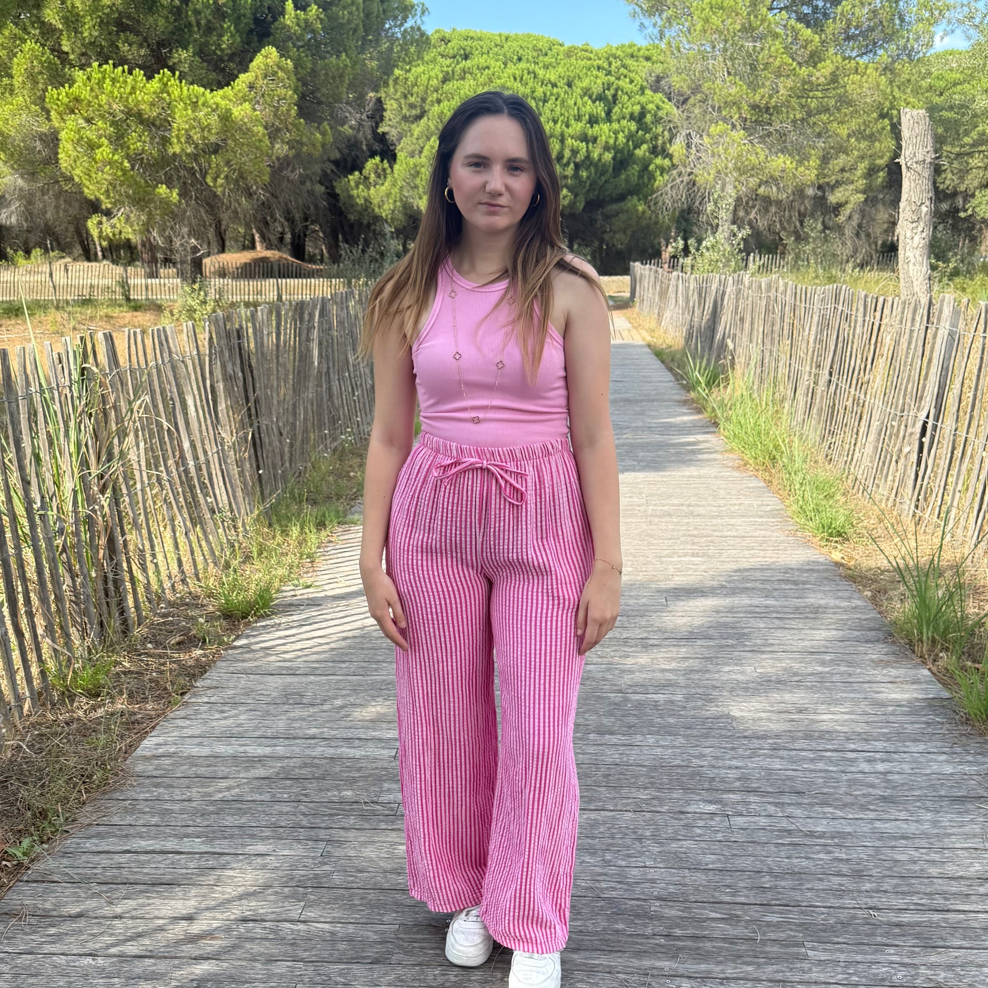- Pantalon gaze de coton rayé